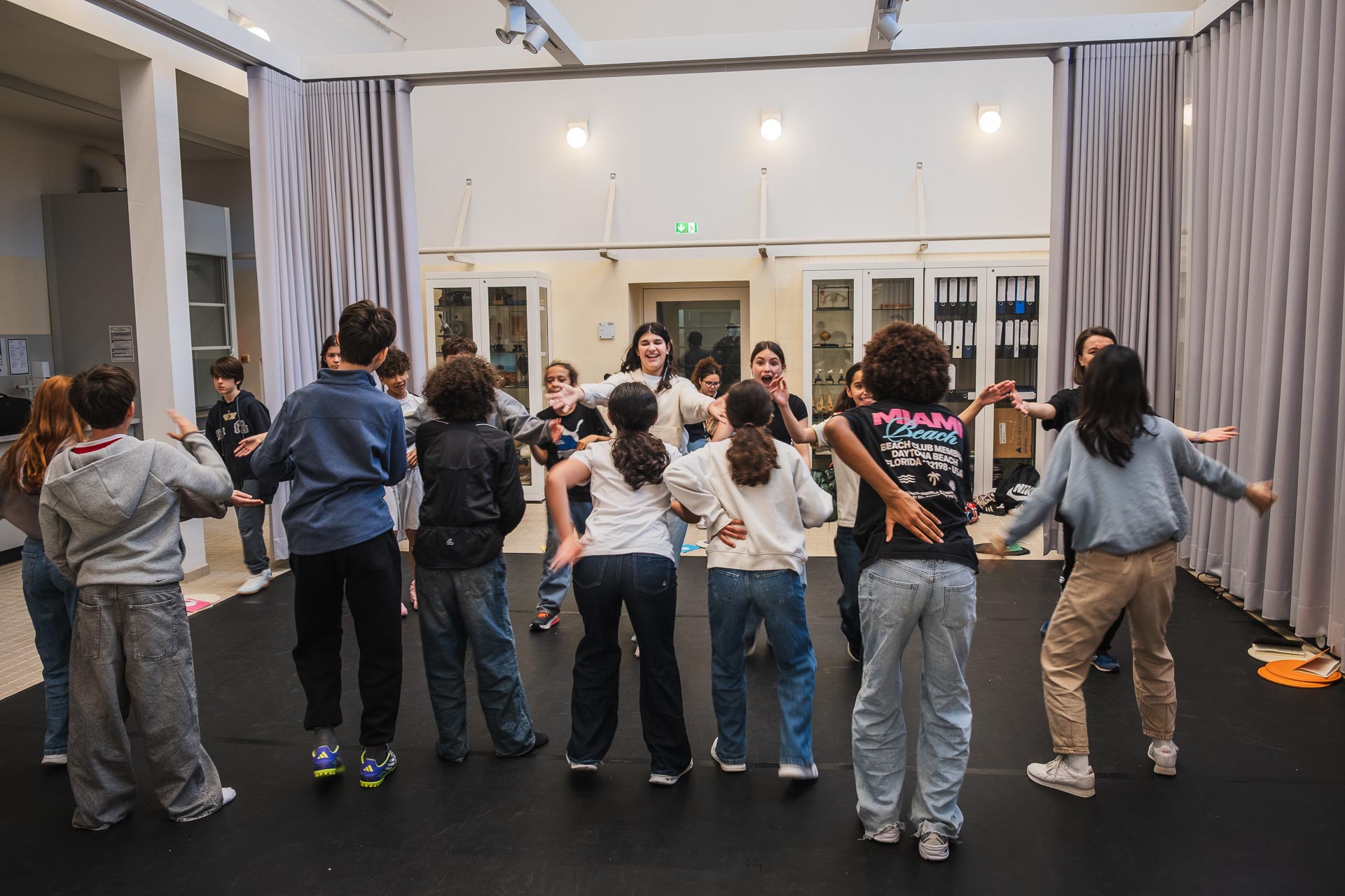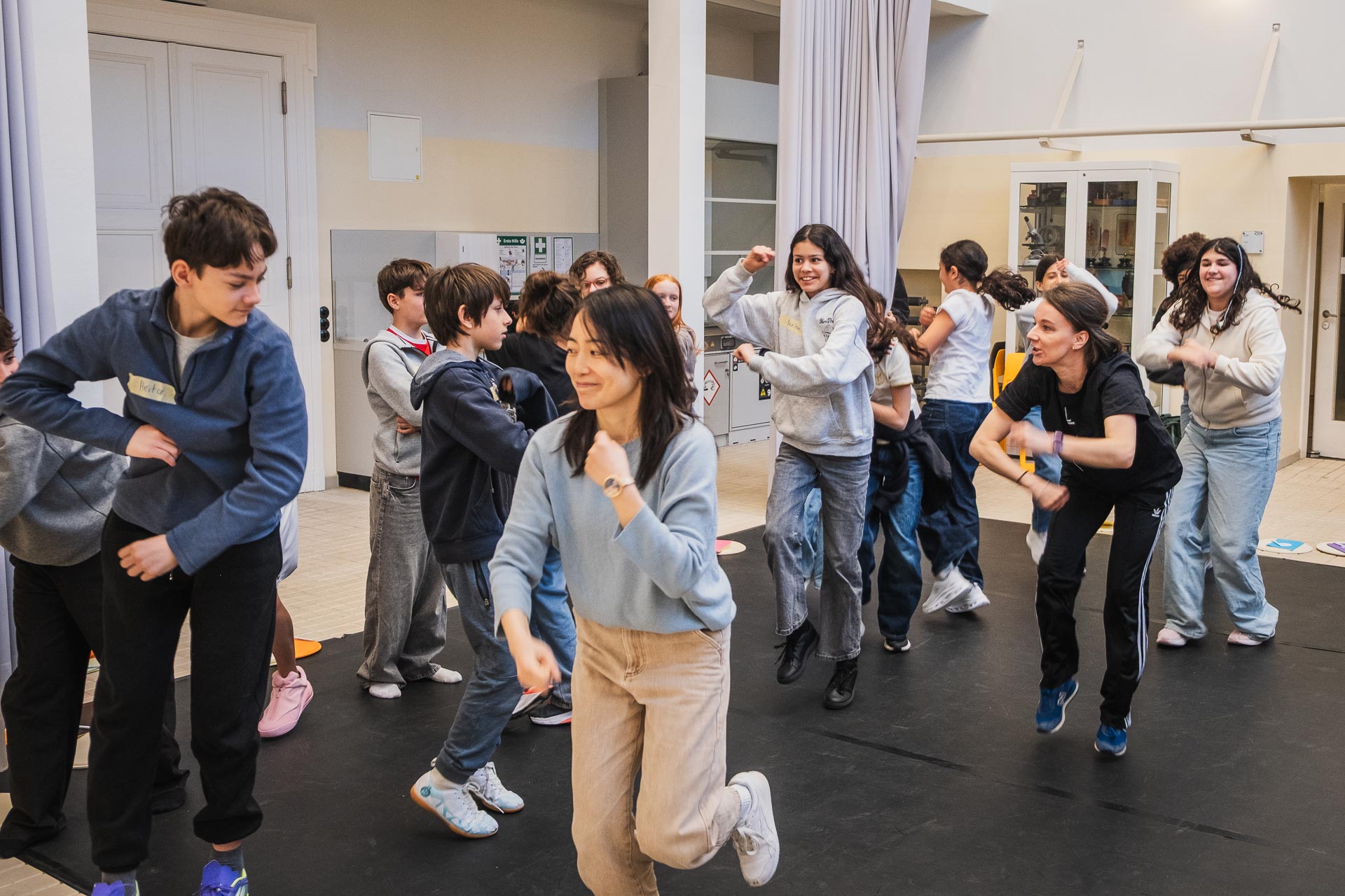 The workshop was marked by a lively exchange: The children asked numerous questions and participated actively and with great curiosity. Many expressed great interest in learning other subjects, such as math, English, or art, through dance. Combining scientific content with creative methods allowed for a playful approach in which scientific thinking complemented artistic forms of expression while fostering body awareness and collaborative work.